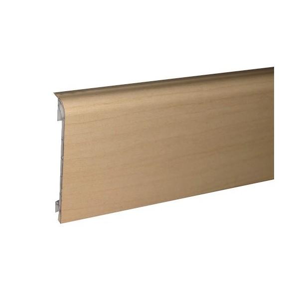 Sockelleiste als Kunststoffhohlkammerprofil. Diese Leiste ist mit einer Gummilippe an der Ober- / Wandseite versehen .