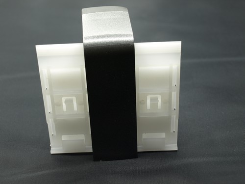 Verbinder-Set für Heizungssockelleiste SLF 90 mm . Das Verbinder-Set besteht aus dem Verbinder mit Gummilippe oben sowie der Verbinderschelle 2158 .